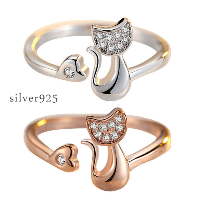 指輪 レディース 猫 シルバー925 猫モチーフ フリーサイズ